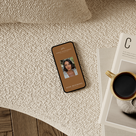 Sabina wanted to refresh her brand and align it more with her personality and business values, we worked together and adapted her color palette to include more natural hues which is what her primary focus is for her bride's makeup. She wanted to include a symbol of an Olive branch which symbolises her peaceful and calm nature when it comes to working with brides on their big day as well as tying back in with nature.